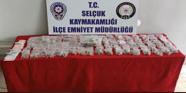 Selçuk'ta uyuşturucu ve uyarıcı madde ticaretine yönelik yapılan operasonlar hız kesmeden devam ediyor. Selçuk Cumhuriyet Başsavcılığı'nın yürüttüğü operasyonlarda İlçe Emniyet Müdürlüğü Suç Önleme ve Soruşturma Büro Amirliği ekipleri ilçenin önemli noktalarına operasyon düzenliyor. Operasyon sonucunda durdurulan bir araçta arama yapılan aramada, satışa hazır halde 228 adet naylon poşet içerisinde toplam daralı ağırlığı 482 gram olan Skunk bölümü ele geçirildi.