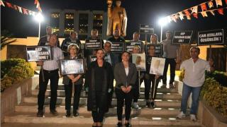 Yargıtay 3. Ceza Dairesi’nin Can Atalay kararının ardından Atatürk'ün huzuruna çıkarak basın açıklaması yapan Efes Selçuk Belediye Başkanı Filiz Ceritoğlu Sengel'e destek veren CHP Efes Selçuk İlçe Örgütü, ellerinde yazılı dövizlerle slogan atarak yürüdüler.